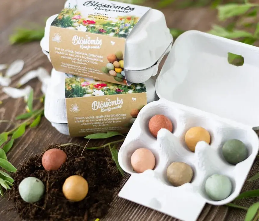 De Blossombs bevatten biologische, wilde bloemzaden en zijn ze samengesteld met natuurlijke klei, voedings- & kleurstoffen