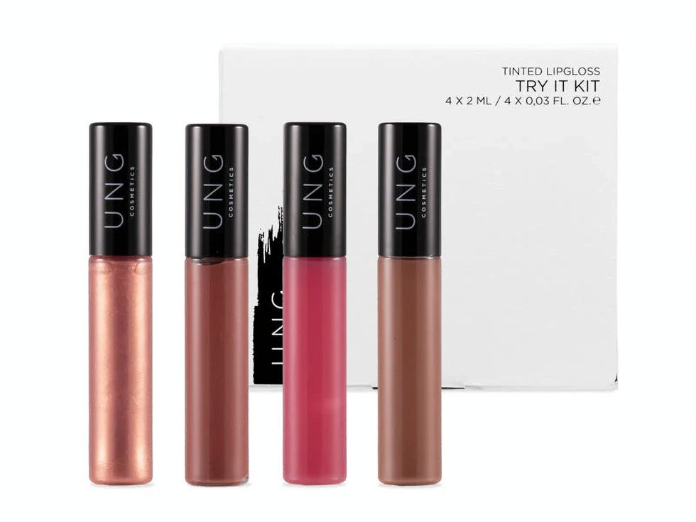 Deze kit bevat 4x UNG Tinted lipgloss 2ml in de kleuren: